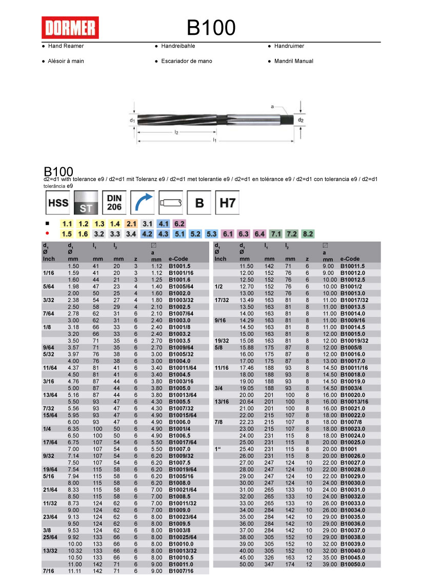 HSS Hand Reamer B100