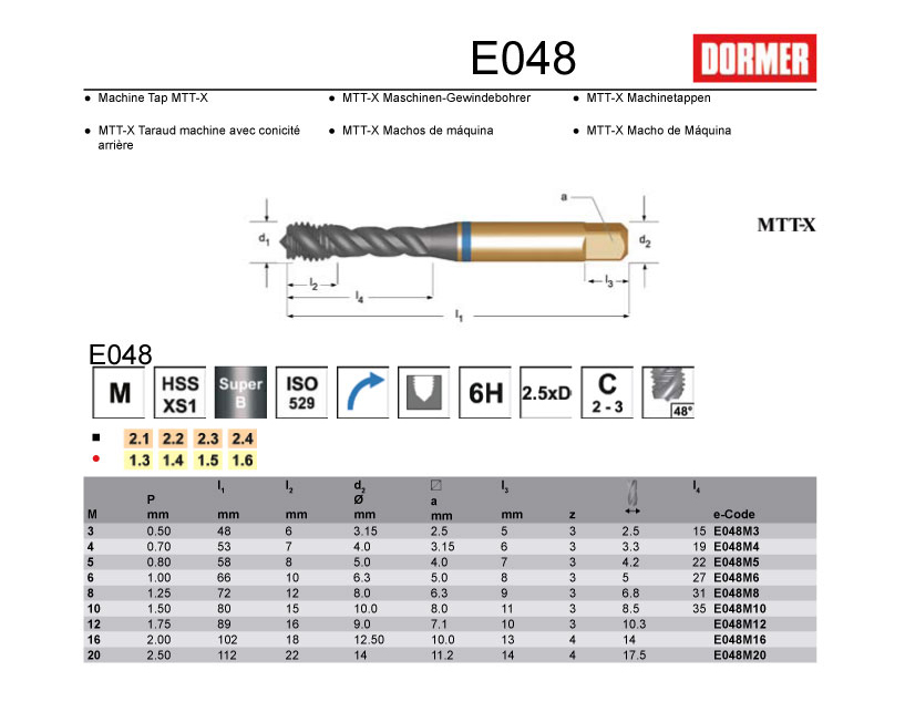 H.S.S. -XSI Machine Tap Spiral FluteMTT-X E048